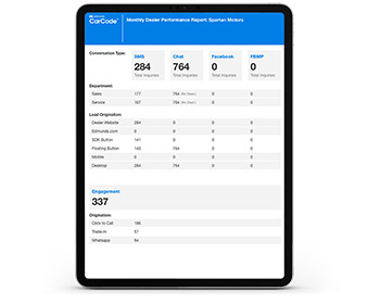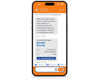 Edmunds CarCode connects you to shoppers via website chat, text, Facebook Messenger and Google Business Messages on a single, easy-to-use platform — from any device. It’s built for integration with other Edmunds products, giving you and customers a more streamlined experience. Upgrade to our managed services and our trained agents will respond quickly when you’re busy or away.